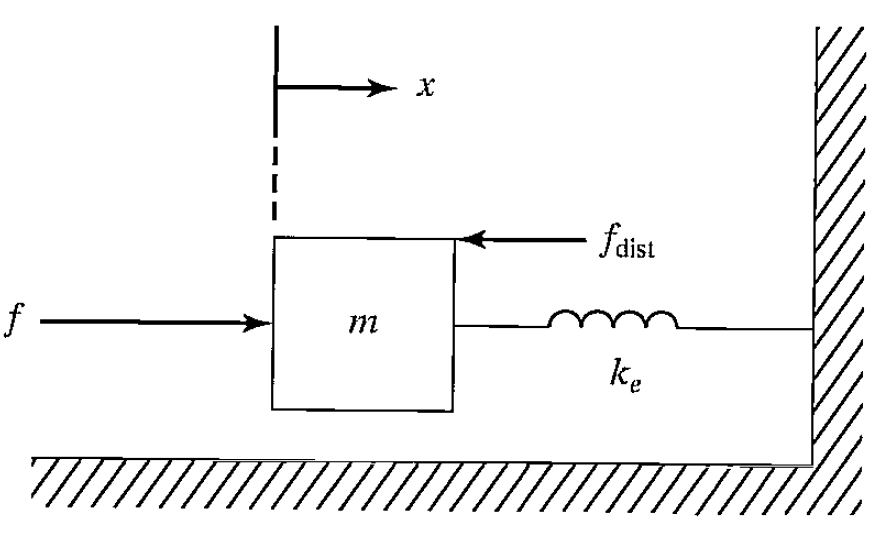 The variable we wish to control is the force acting on the environment \(f_e\), which is also the force acting in the spring