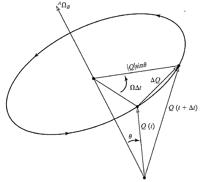 Here we talk a little more with rotation item \({^A\Omega_B}\times {^AQ}\).